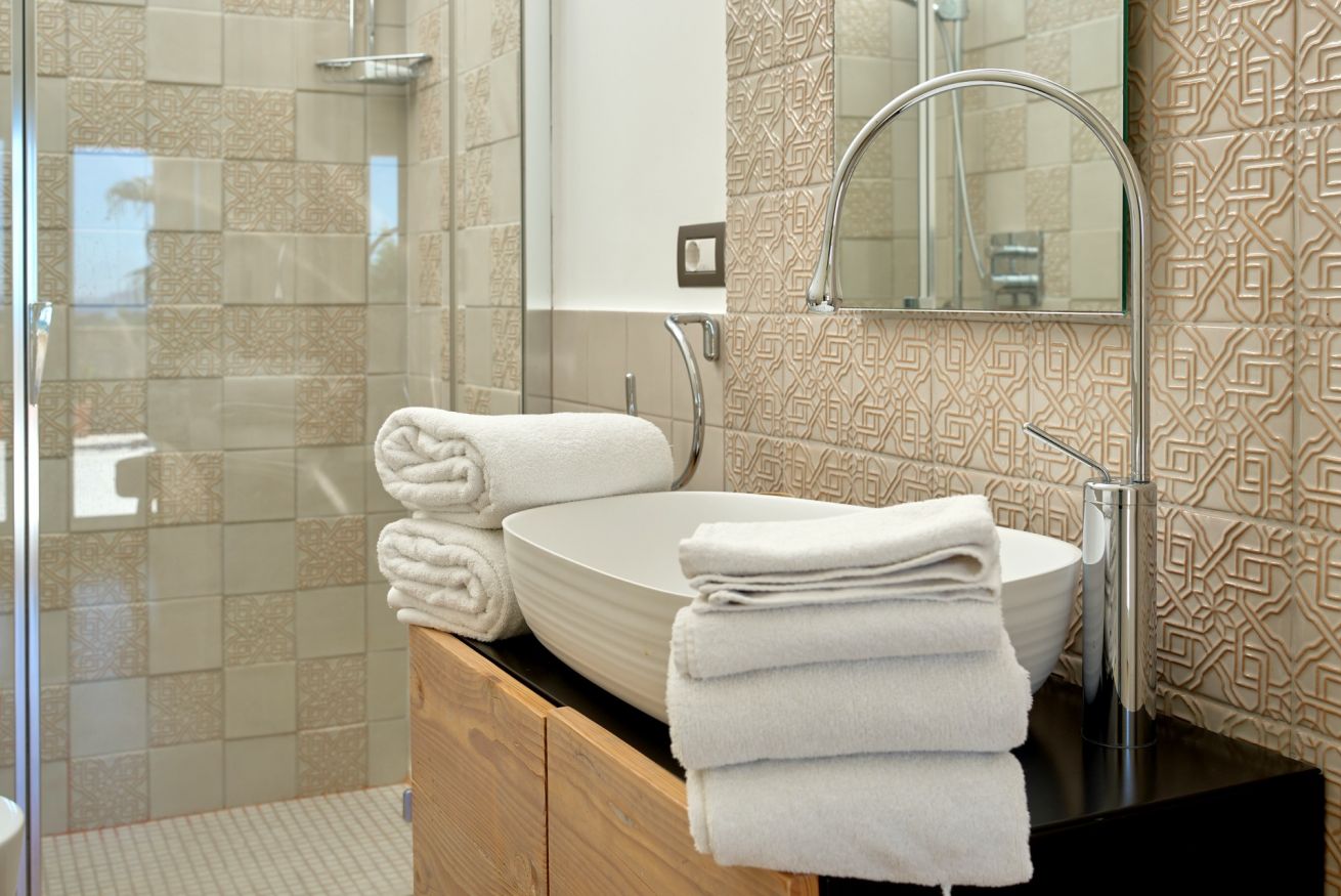 Villa Hermes accommodates up to 12 guests in 6 bedrooms, each with a private bathroom, for a total of 9 bathrooms (6 en-suite + 3 shared).