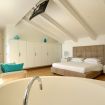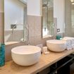 Local stone, light woods, and handmade ceramics create a refined yet welcoming atmosphere.