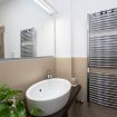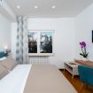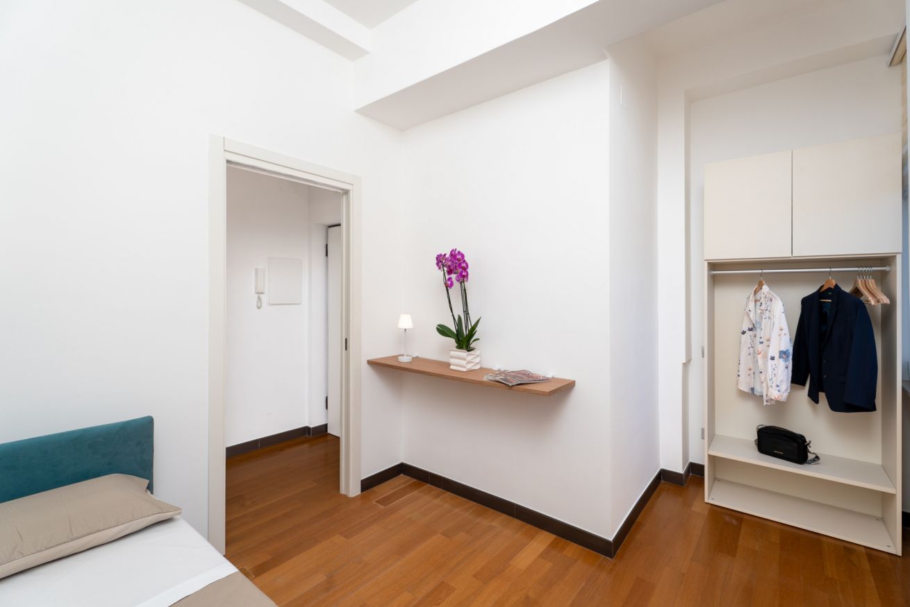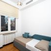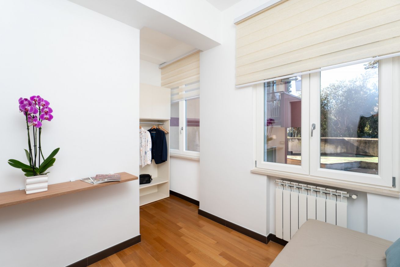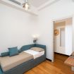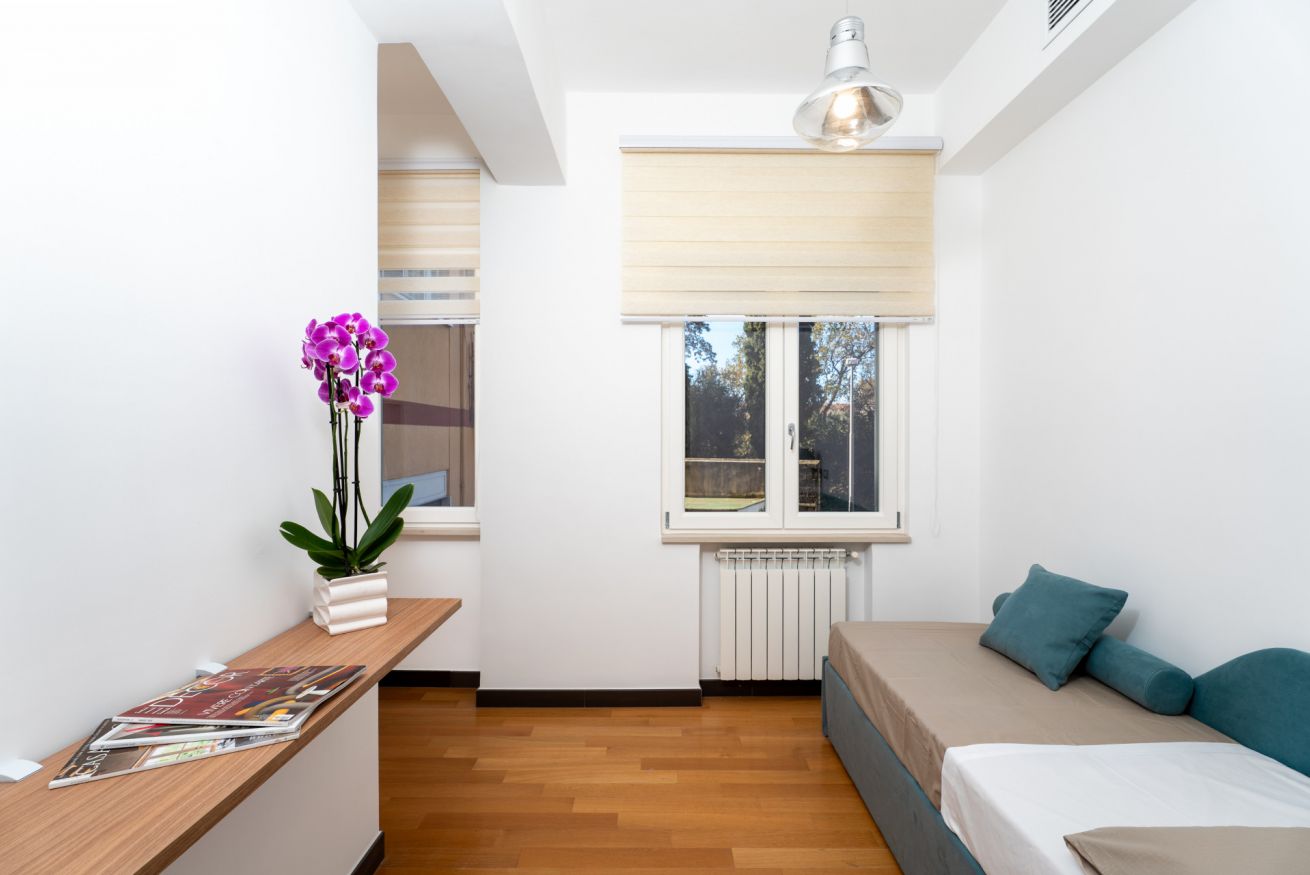 The apartment features two bedrooms: an elegant and relaxing master bedroom, and a single bedroom with a pull-out second bed, ideal for families, couples with children, or small groups of friends.