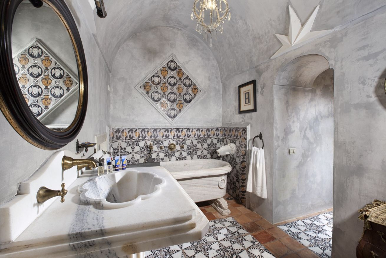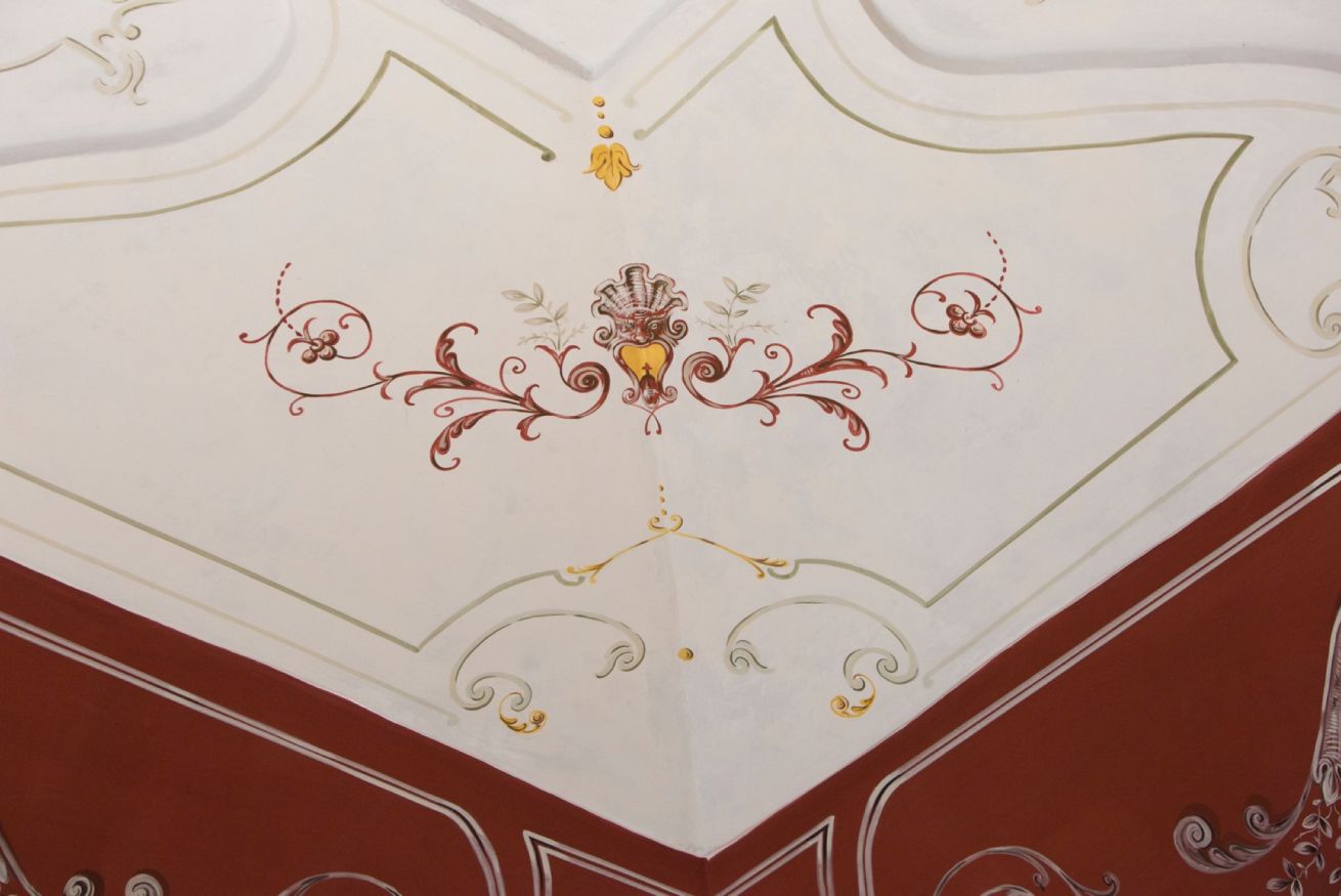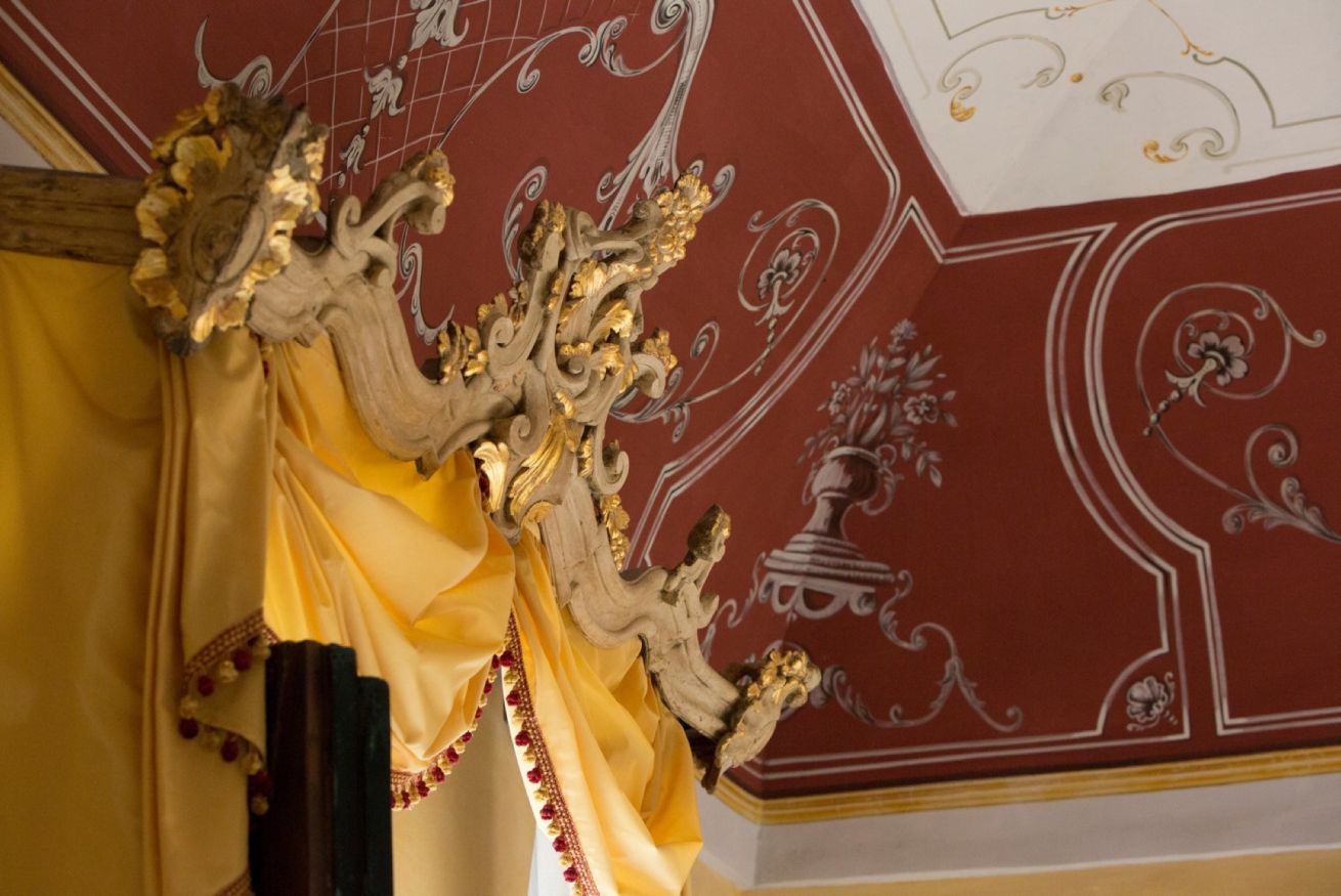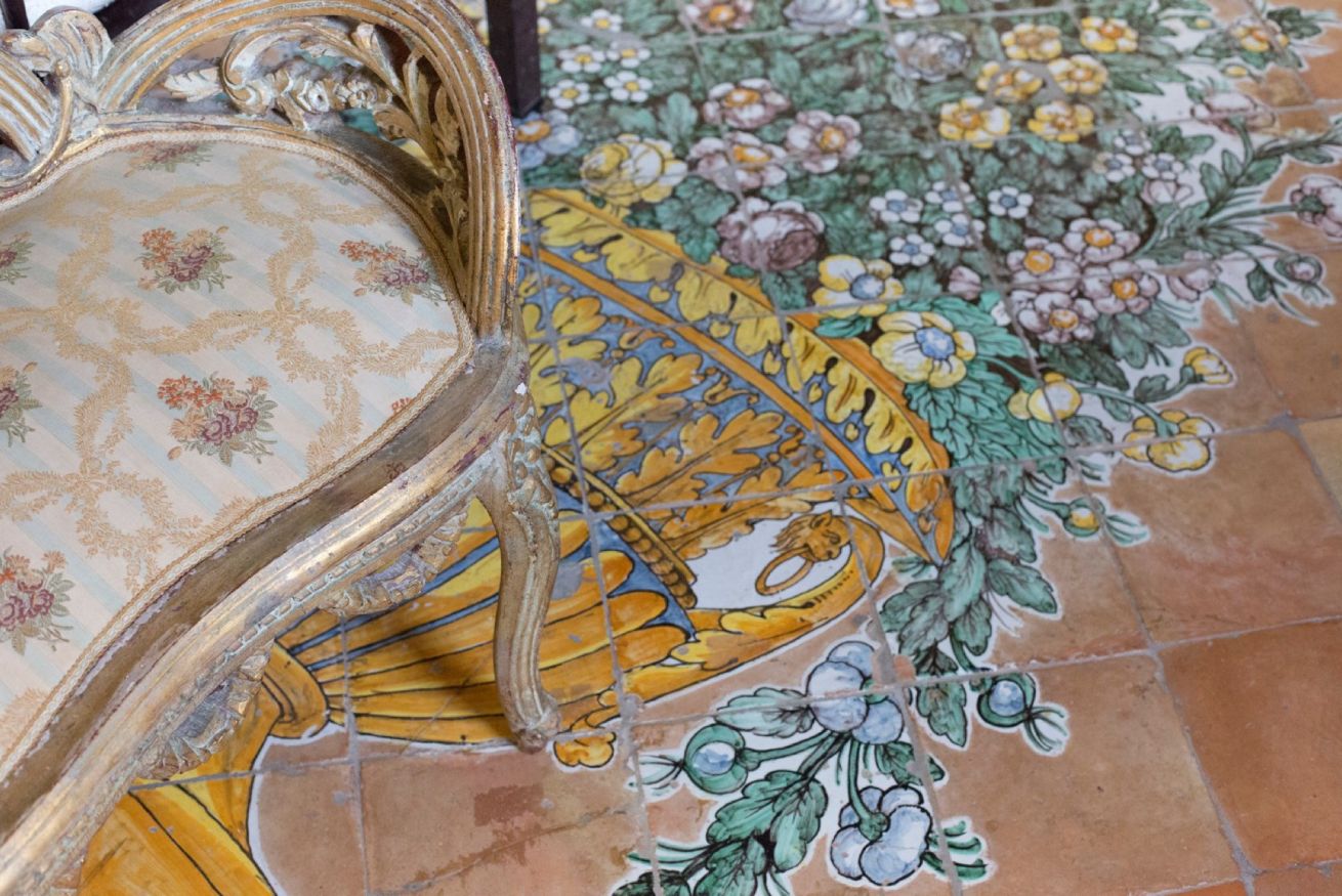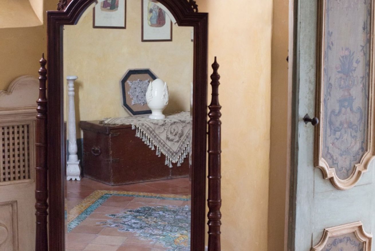 Immerse yourself in a unique, timeless atmosphere, enhanced by the original late Baroque frescoes found in the rooms, as well as by the countless artistic details that perfectly reflect the late-18th-century Mediterranean style of a typical noble residence. The home is located on the piano nobile of the eastern wing of the palace and is composed of four spacious rooms: the first two are used as a kitchen and living room, while the remaining two form the sleeping area, with two large bedrooms, one of which has an en-suite bathroom.
