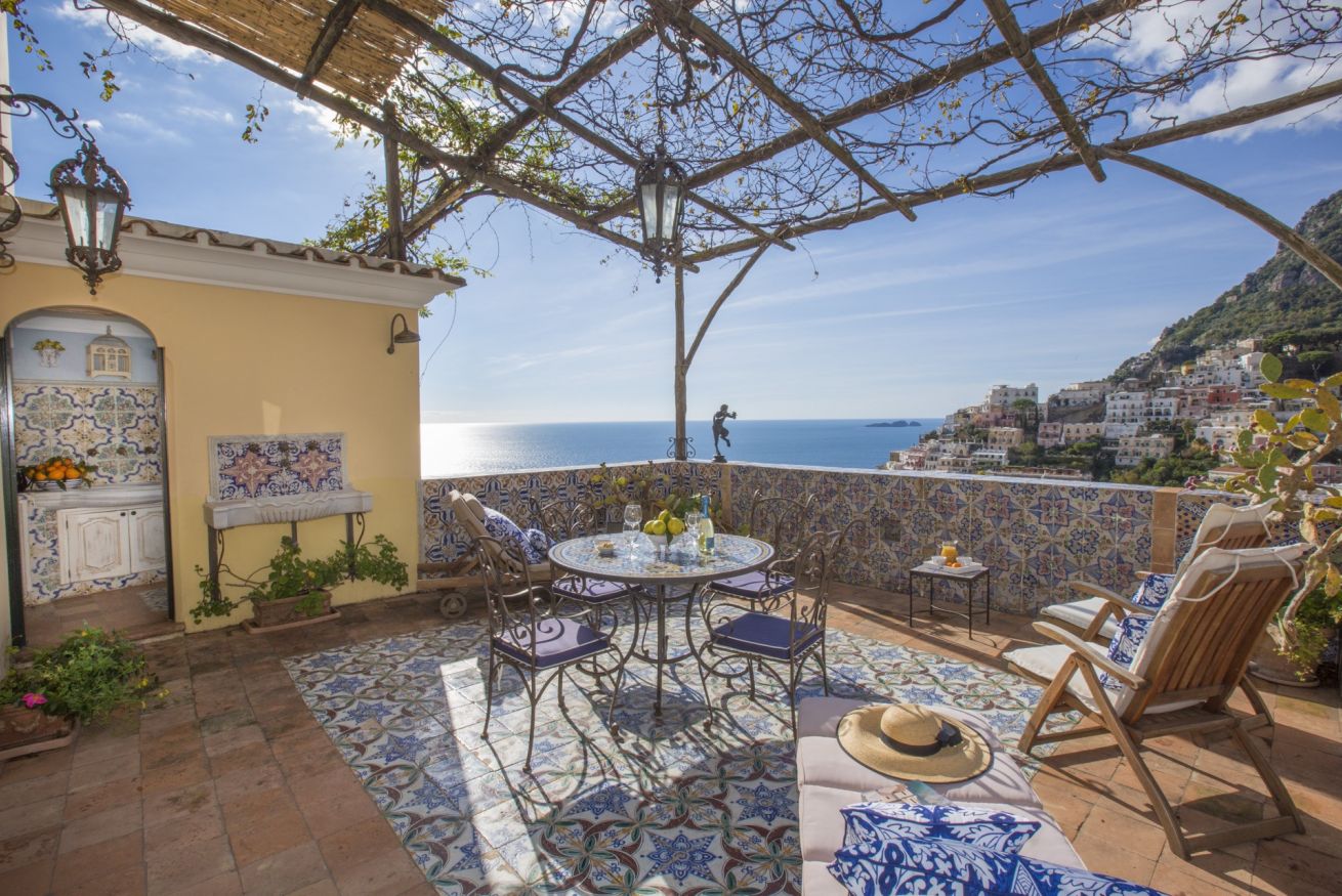 The focal point of the house is undoubtedly the terrace, decorated with reclaimed Vietri sul Mare ceramic tiles and furnished with a wrought-iron table and chairs, as well as sun loungers. The breathtaking view enjoyed from this terrace captures the visitor’s gaze and offers a truly unique spectacle to be admired in total comfort from your own private outdoor space. Outside, there is also a small kitchenette equipped with a sink, small oven, and toaster, allowing guests to prepare meals directly on the terrace.