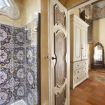 The kitchen, also classically inspired, is equipped with all modern appliances, including a dishwasher, large oven, stone sink, six-burner cooktop, refrigerator with freezer, coffee machine with pods, and kettle.