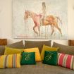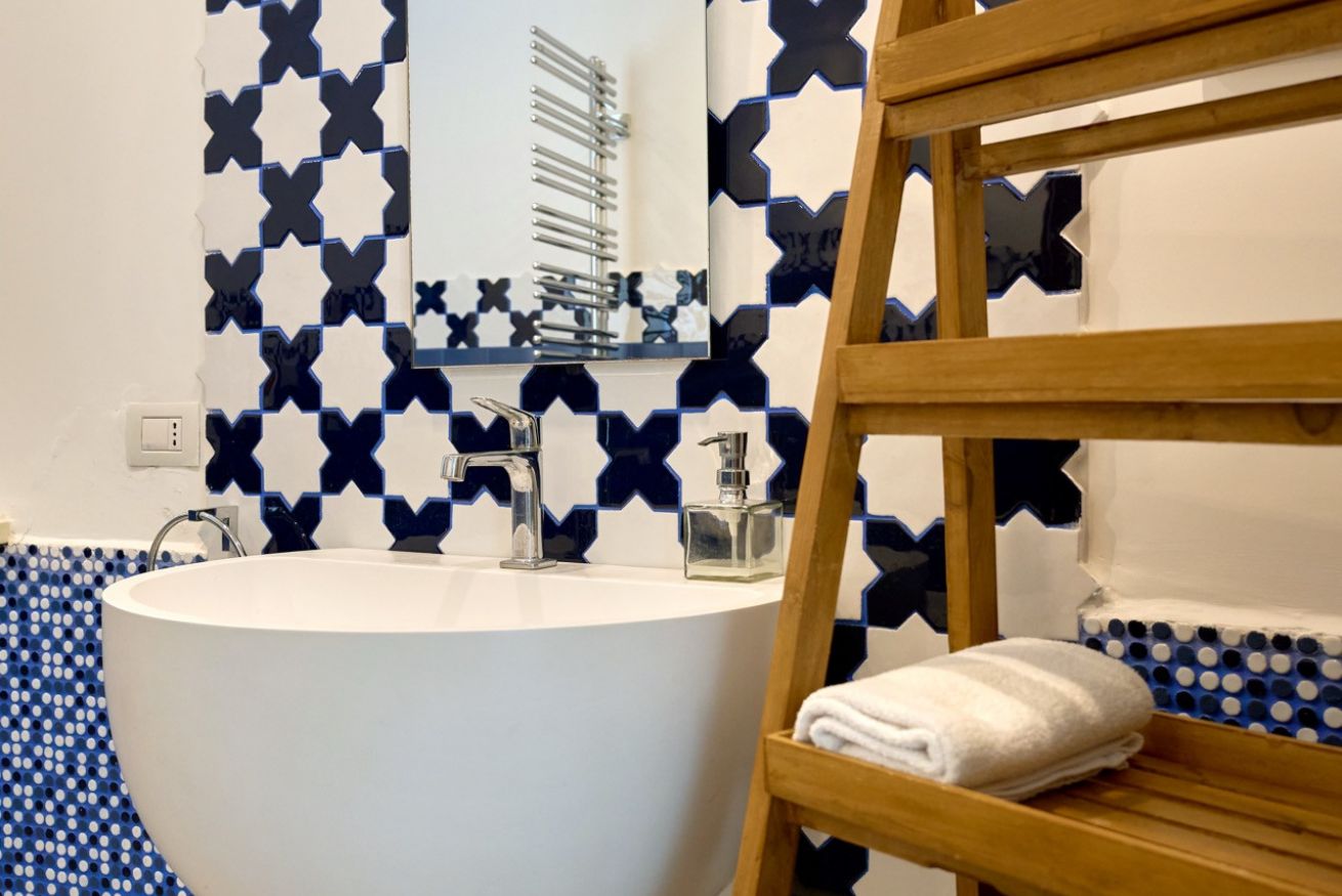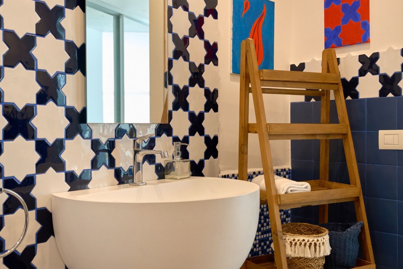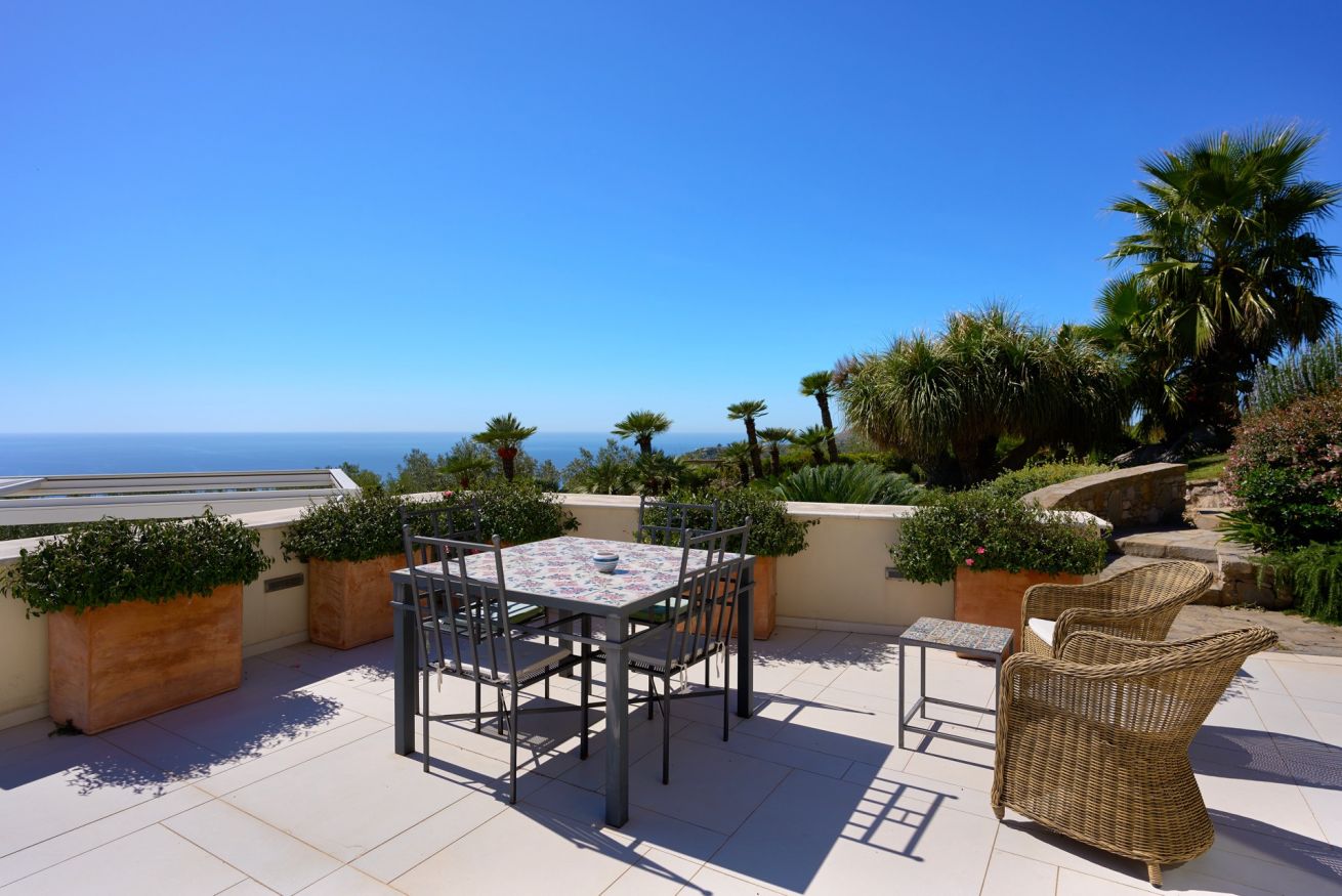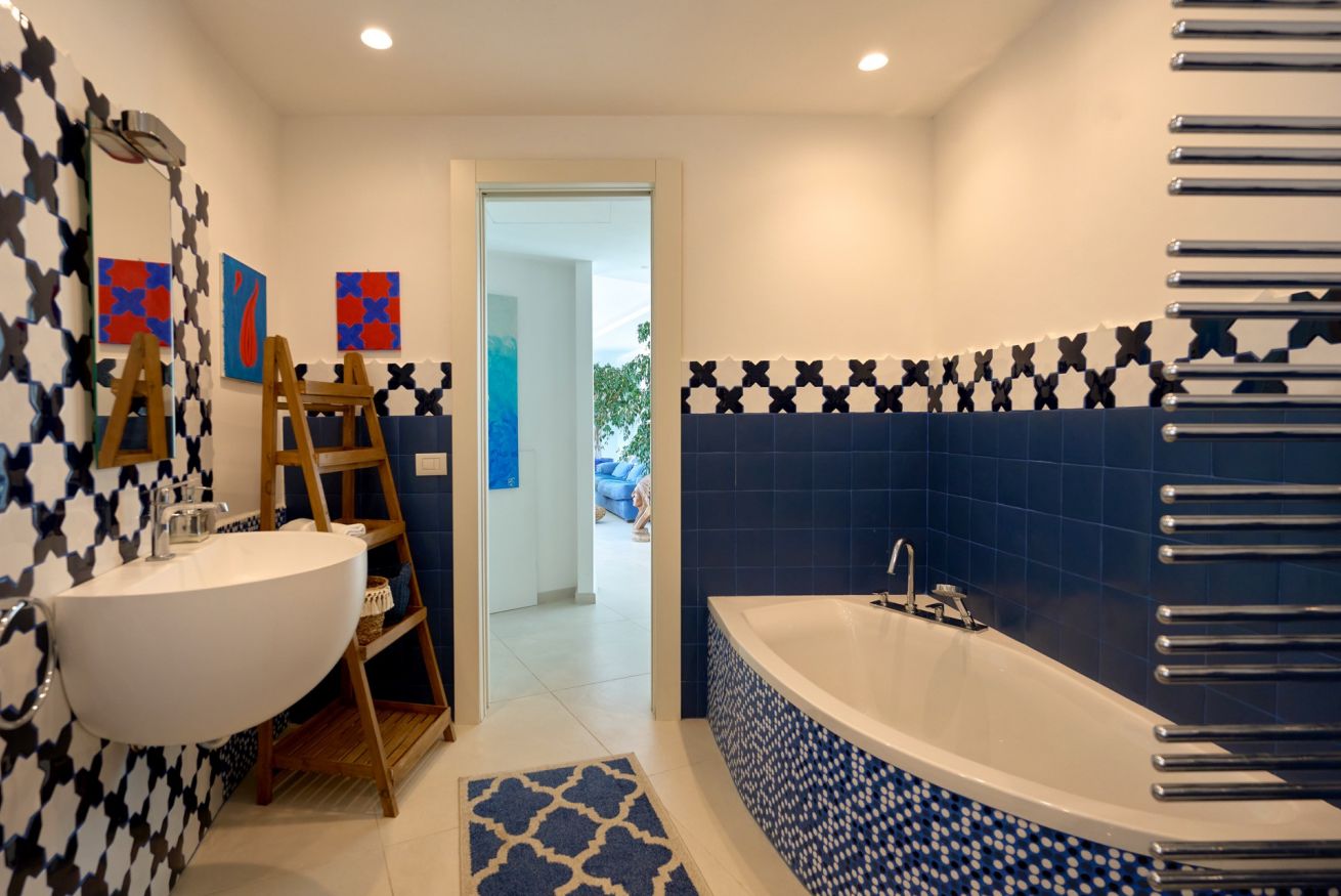 The main living area flows onto a panoramic terrace with lounge seating and hand-painted Vietri tables.