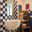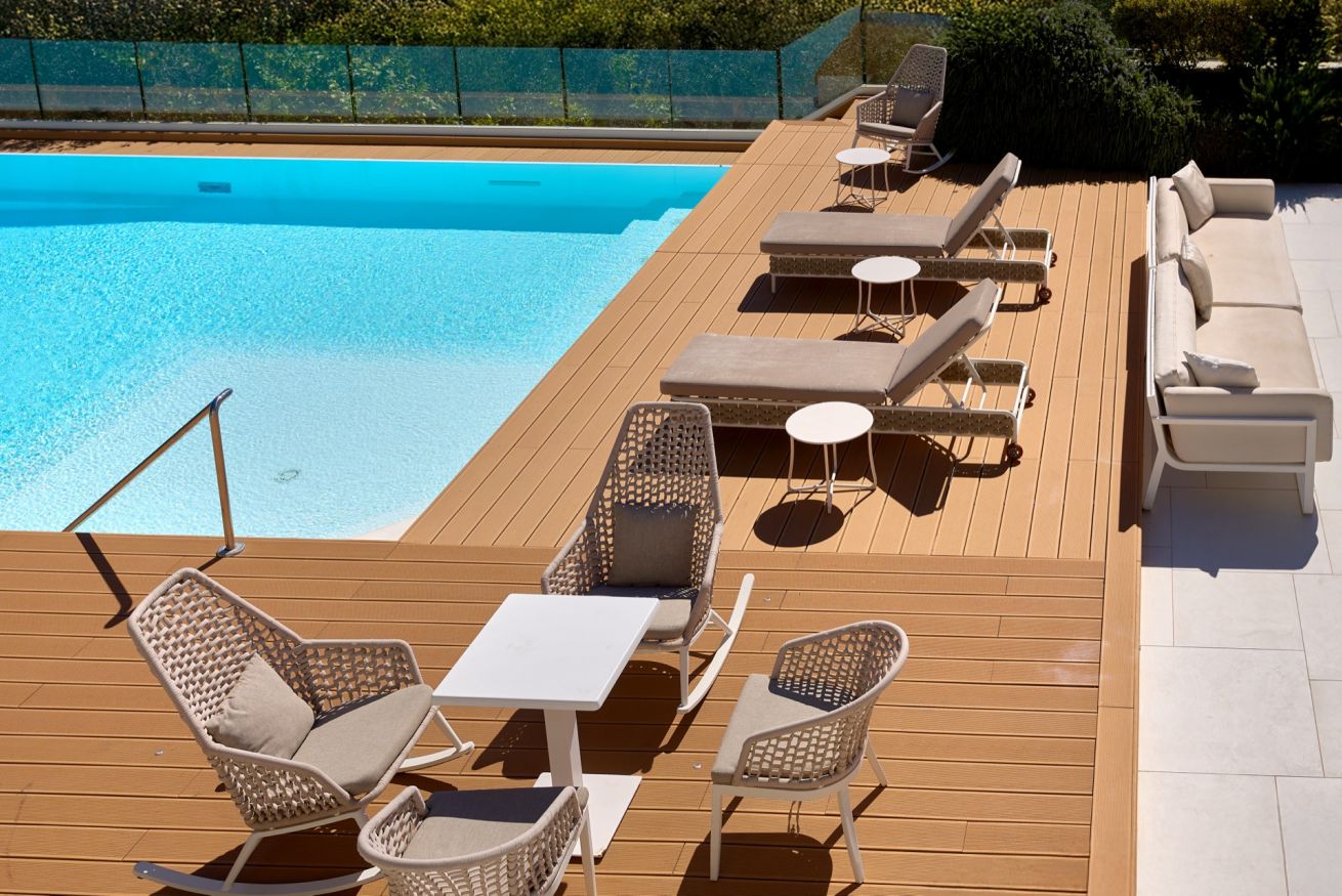 Local stone, light woods, and handmade ceramics create a refined yet welcoming atmosphere.