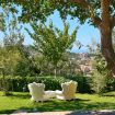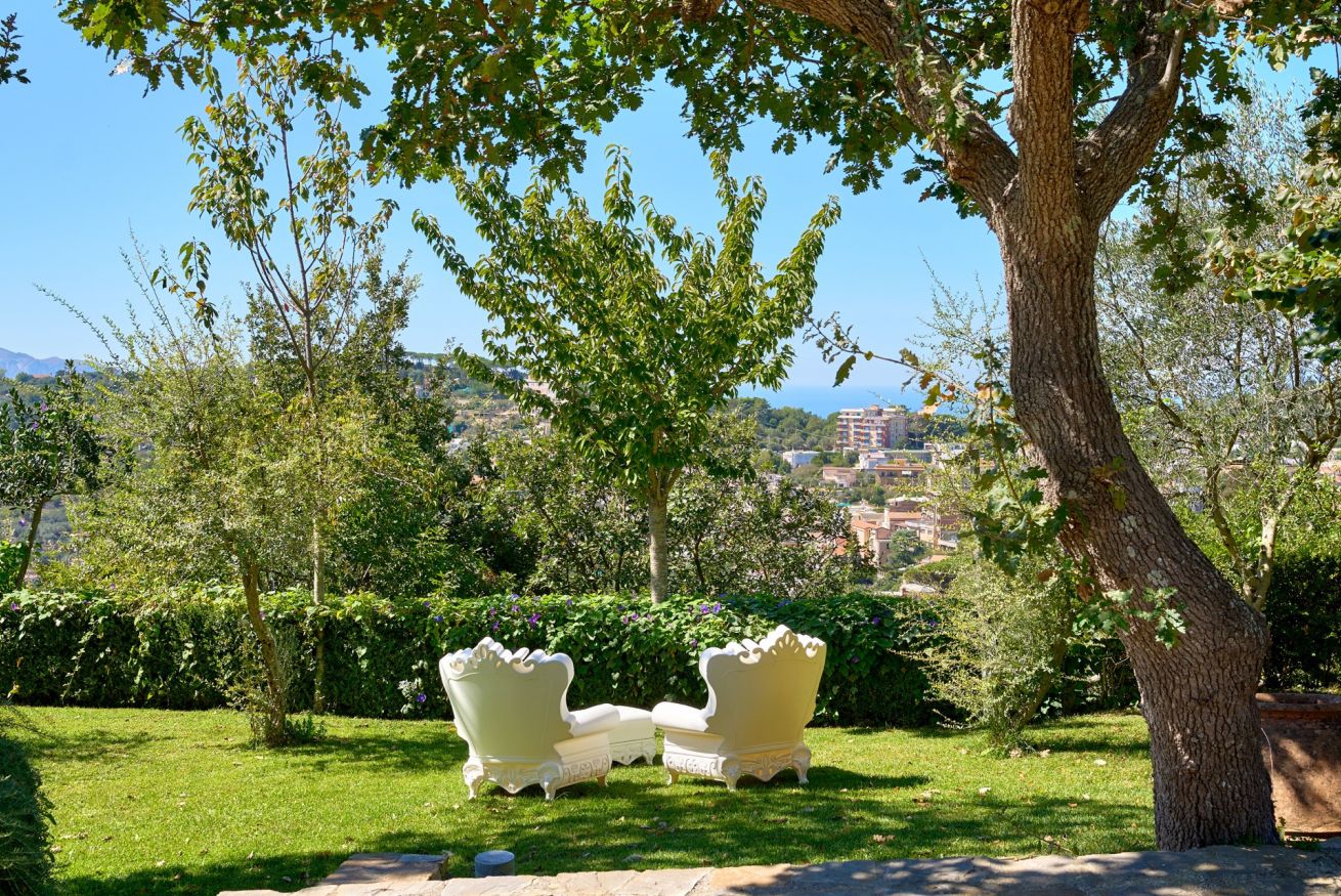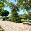 Terraced gardens filled with lemon trees, bougainvillea, and wisteria surround the property.