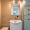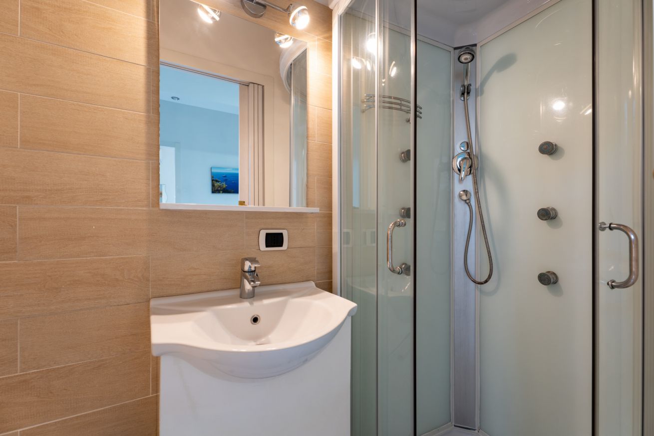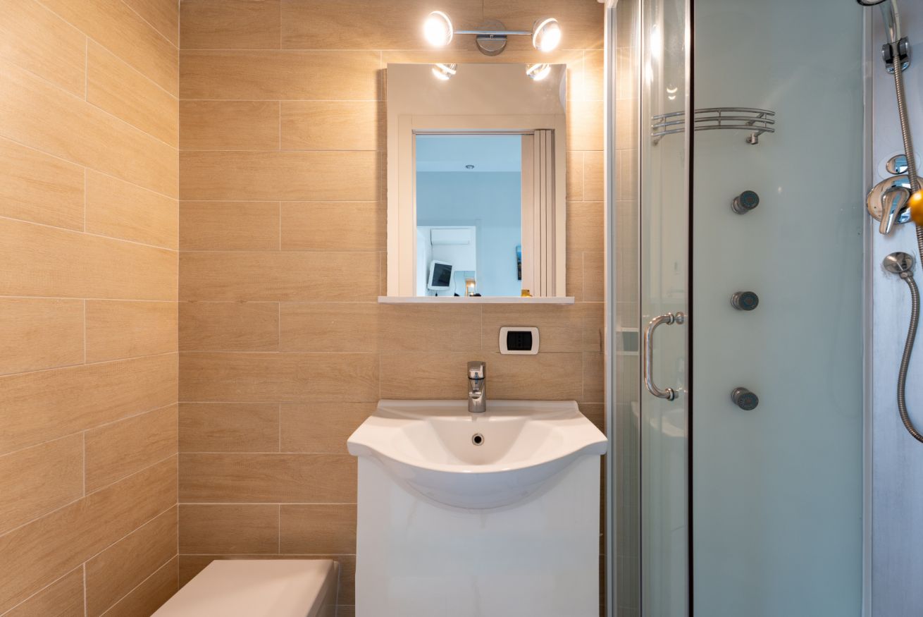 The modern bathroom, fitted with a shower, completes the apartment and provides everything needed for a pleasant and relaxing stay.