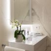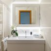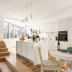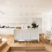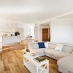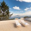 The spacious open-plan living and kitchen area offers a breathtaking sea view and opens up to a well-equipped terrace, ideal for relaxing outdoors. The modern and spacious kitchen features a central island and a large dining table. The expansive terrace with a sea view completes this extraordinary property, perfect for those seeking luxury and tranquility.